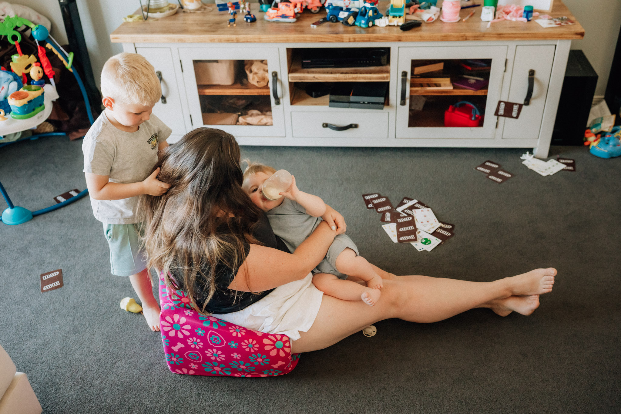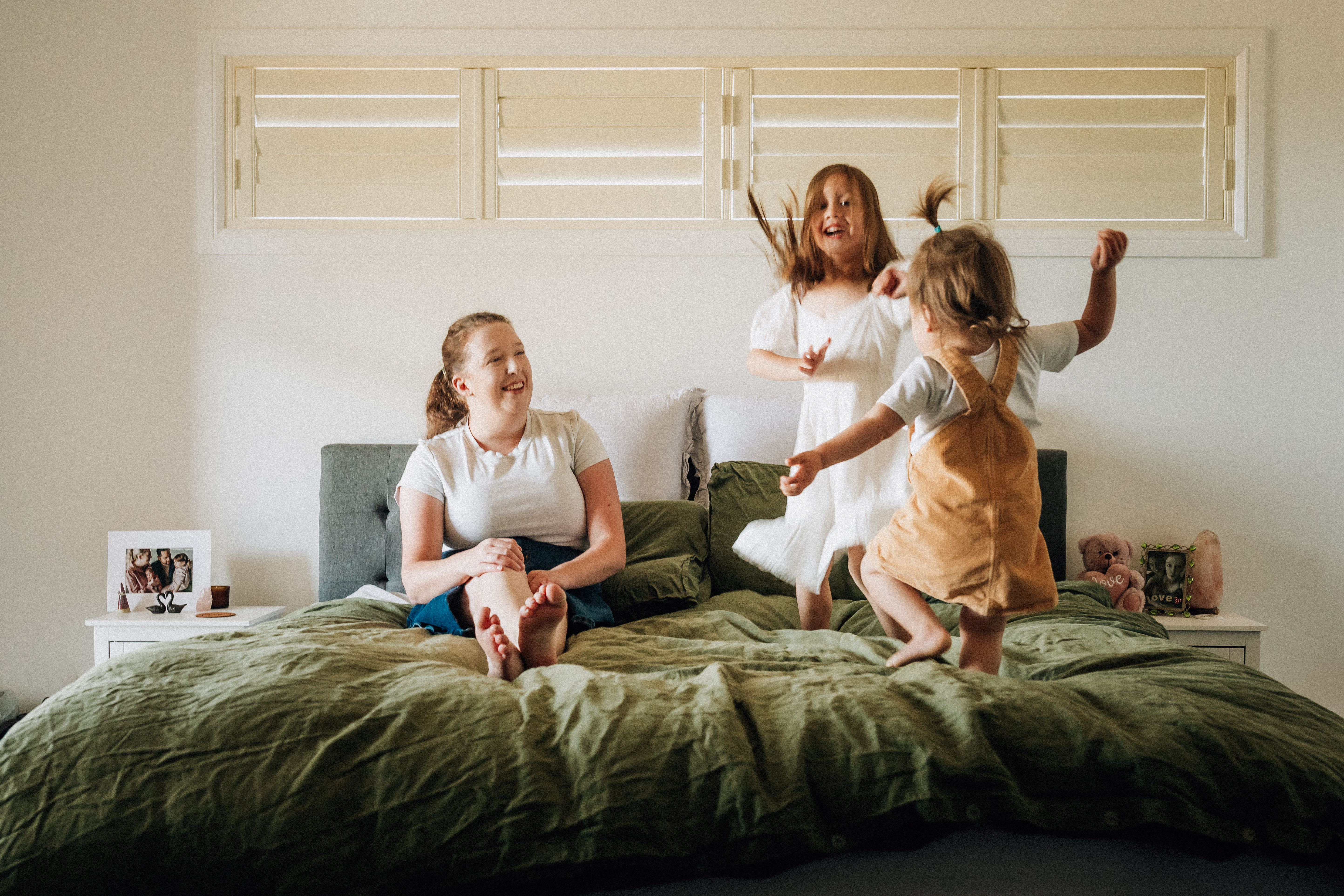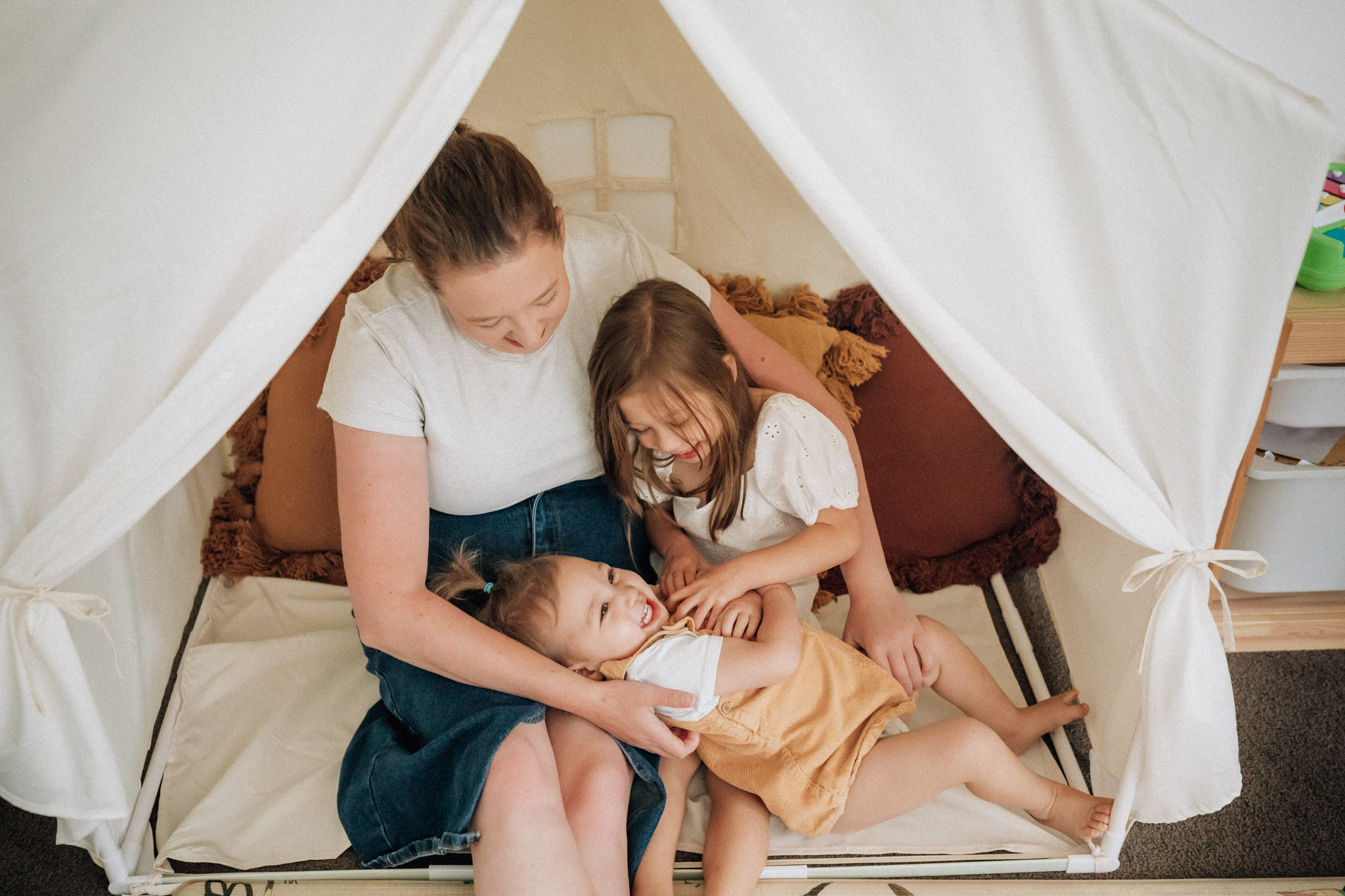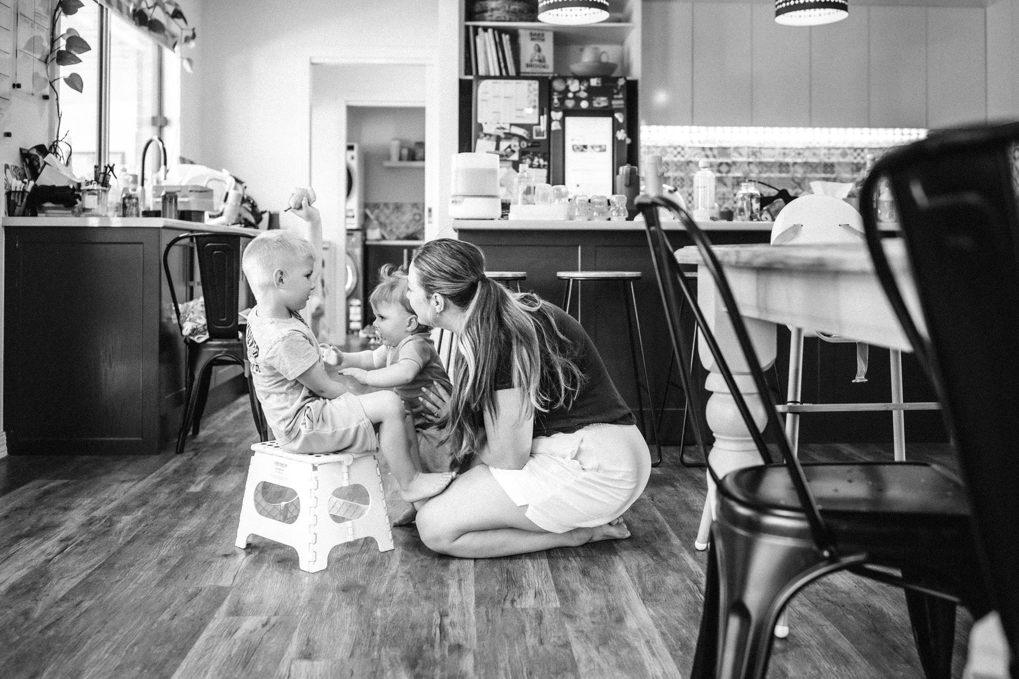 We’ll spend around 40 minutes together in your home, or maybe in your backyard, front steps, or even under that patch of shade your kids love to play in. This is about capturing how this season of motherhood feels. Not stiff smiles or matching outfits, but the real stuff: the snuggles, the giggles, the clingy limbs, the quiet looks.